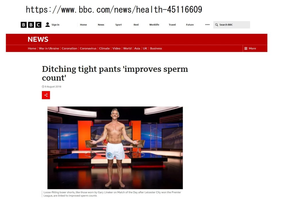 ボクサーブリーフが外性器を生地の張力で持ち上げることで、収まりが良く優れた履き心地を獲得した反面、前述したように重大な懸念が潜んでいることが近年明らかになりました。つまり陰嚢の弛緩を阻害するタイトな下着が陰嚢温度の上昇を促し、精子数の低下を招いているということです。陰嚢が体温で温められると、本来なら体温より3度以上低く保たれなければならない陰嚢の表面温度が上昇することによって、精子の生成能力にダメージを与え得ることは想像に難くないことです。はなしは逸れてしまいますが、ドイツでは使い捨てオムツが乳幼児の陰嚢温度上昇につながるとして、警鐘を鳴らしているほどです。